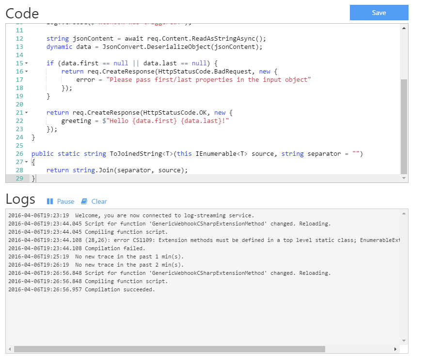Azure Functions 上で拡張メソッドの定義