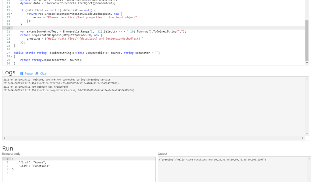 今回はこの拡張メソッドをAzure Functionsで定義利用します。
