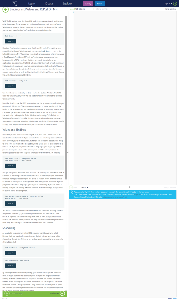 F# チュートリアル、むむっと思っていたのですが、記事書きつつ見直していてTry F#がプレイグラウンドもあるし最高な気がします。