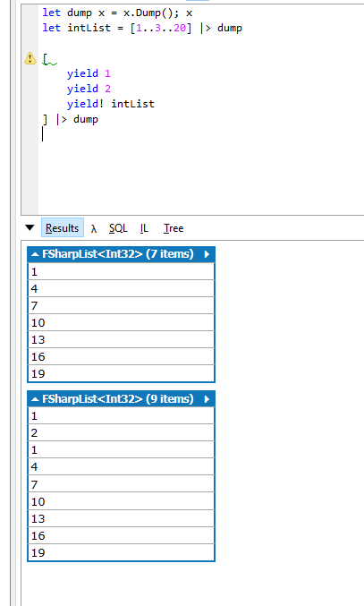 でList内Listの展開までされてあら素敵。seqやPowerShell同様yield!
