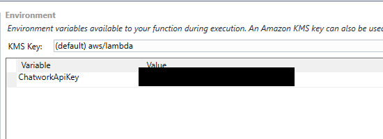 ではVSからデプロイしてみましょう。環境変数にChatworkApiKeyをキーにApiキーを埋め込みます。
